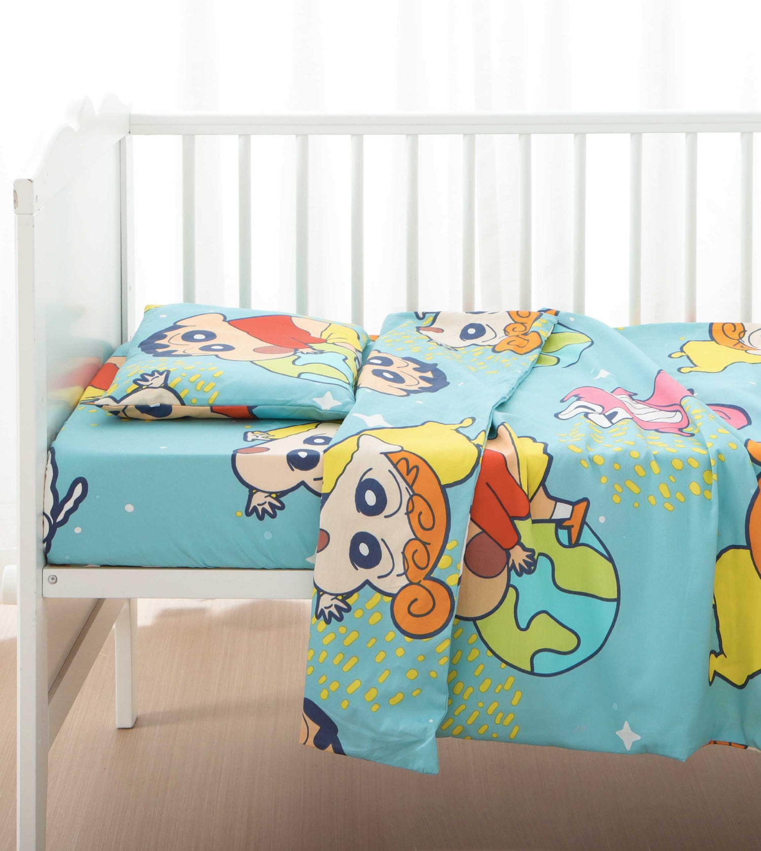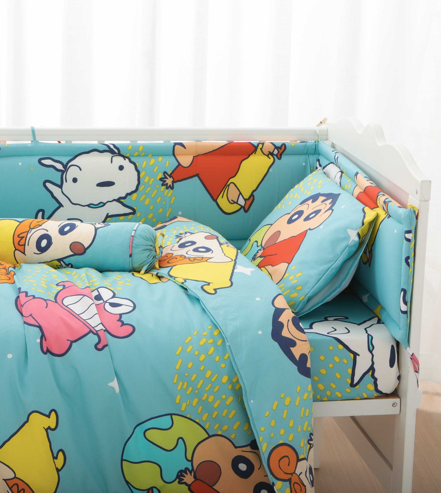 採用100%天然純棉,不對嬰兒皮膚有任何刺激或副作用,呵護嬰兒幼嫩肌膚;棉質且吸濕透氣力強,可吸收環境中的水分而令質感更柔軟,令寶寶體驗自然舒適與柔軟。套裝已包括枕袋、枕芯、攬枕袋、攬枕芯、智慧被袋、薄被芯、床笠,及床邊圍2件。